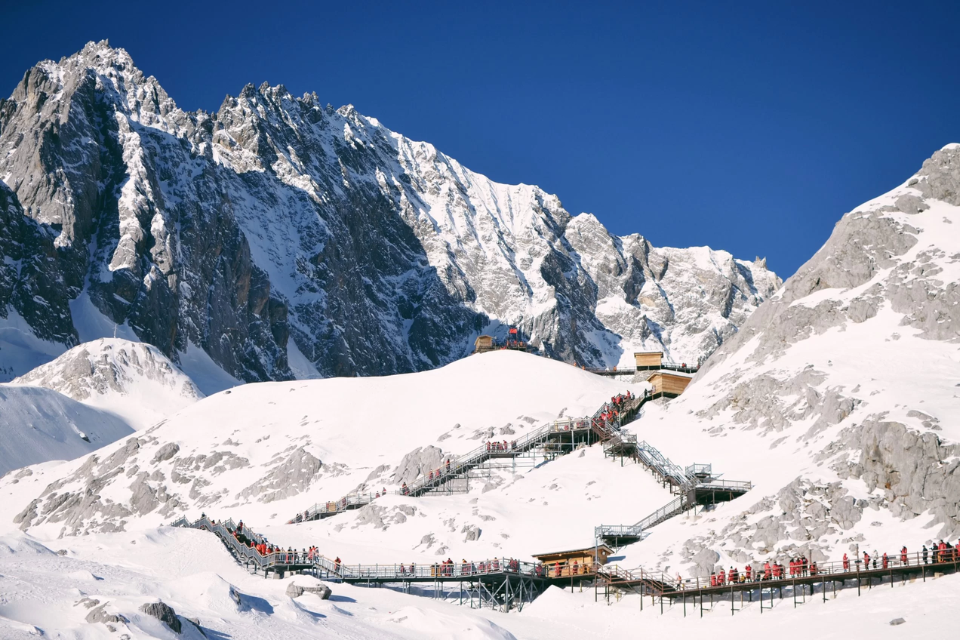 - Núi Tuyết Ngọc Long cách trung tâm phố cổ Lệ Giang về phía Bắc, quanh năm tuyết phủ trắng bao phủ một khu vực rộng lớn giống như con rồng lớn nên được gọi là “Ngọc Long”. Nơi đây còn được so sánh với “Thụy Sĩ Á Đông” như rặng