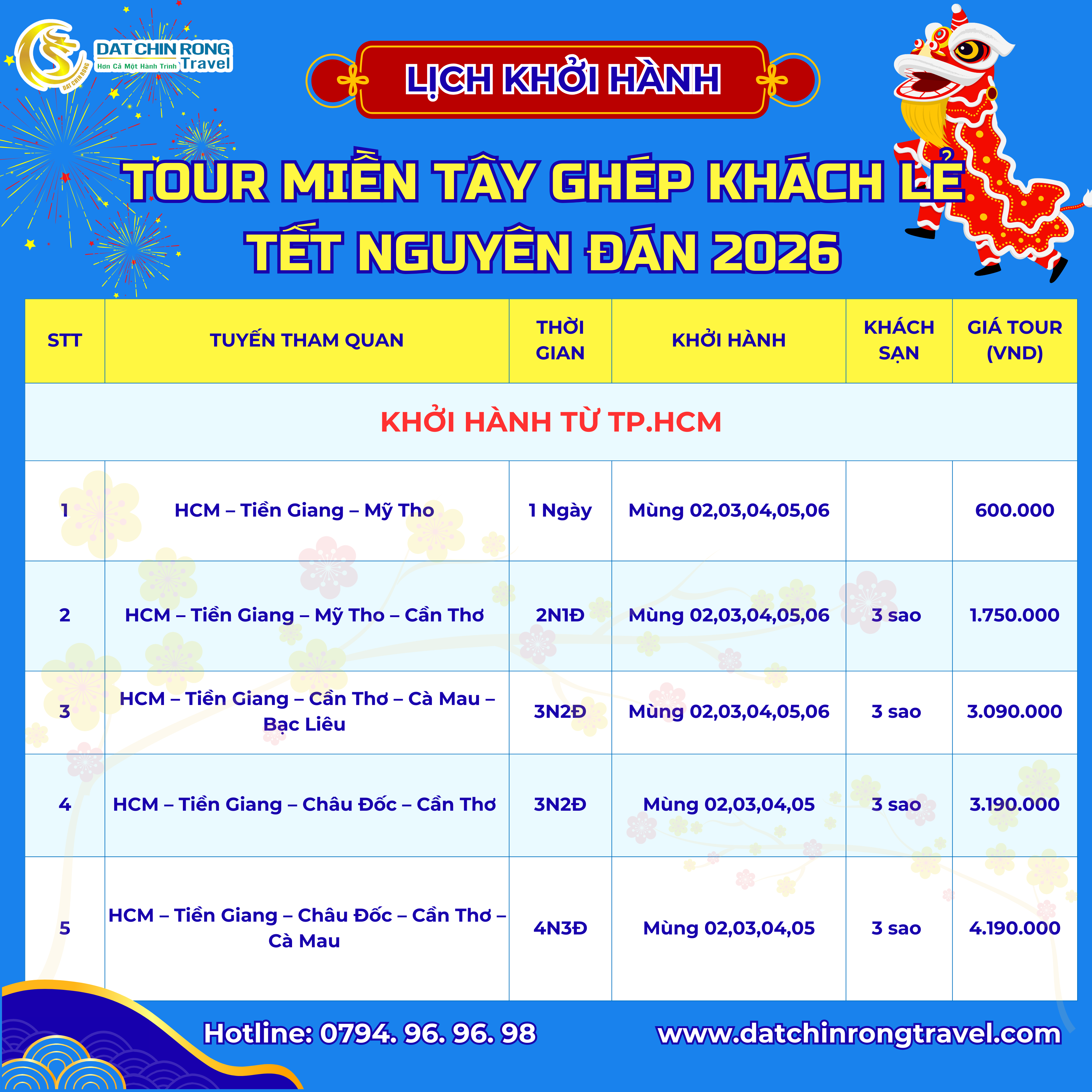 MIỀN TÂY TỪ CẦN THƠ & HCM NĂM 2026
