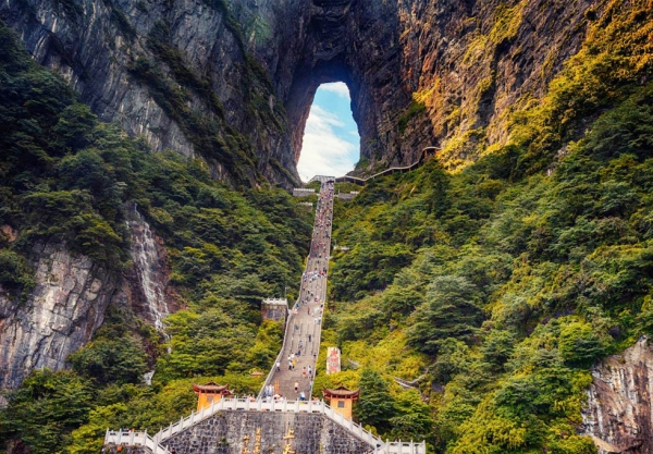 Sáng: Sau bữa sáng xe đưa đoàn di chuyển về khu thắng cảnh Thiên Môn Sơn – Biểu tượng du lịch nổi tiếng tại Trương Gia Giới.