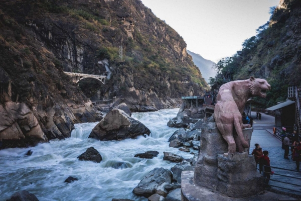 - Khe Hổ Nhảy (Khe Hổ Khiêu - Tiger Leaping Gorge): thẳng cảnh thiên nhiên kỳ thú này là một hẻm núi sâu, dài và hẹp nhất thế giới. Nơi đây dòng sông Trường Giang bị chặn bởi hai dãy núi cao Ngọc Long (5600m) và Habar (5396m), đột ngột thót nhỏ lại một đoạn dài 16km, chiều sâu tính từ đỉnh núi xuống đáy hẻm là gần 3900m. Ngay đoạn hẹp nhất có một phiến đá lớn án ngữ, nước chảy xiết xô vào phiến đá tạo nên những âm vang trong khe núi. (Không gồm phí thang máy).