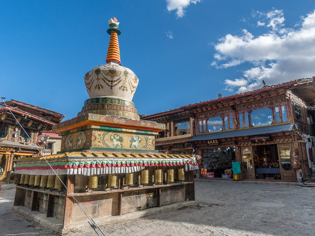 - Bạch Tháp (tham quan bên ngoài): hay còn gọi là Hòa Hợp Tháp trong Tháp – là một trong những tháp trắng lớn nhất của truyền thống Phật giáo Tây Tạng, với vị trí nằm gần lối vào thành phố Shangrila, Bạch Tháp là một biểu tượng đô thị quan trọng – được người dân địa phương xem là cửa sổ của Shangri-La.