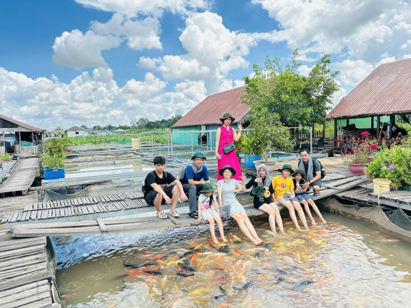 - Làng cá bè, Quý khách tham quan tìm hiểu các loài cá đặc biệt sống trên sông Mekong như cá bắn nước, cá hô (thủy quái sông Mekong), cá trê hồng… Và tham quan quy trình nuôi cá trên bè của các hộ ngư dân, tham gia cho cá ăn, được cá massage chân, chụp hình lưu niệm. TẶNG 1 SUẤT THƯỞNG THỨC CHẢ CÁ THÁC LÁC