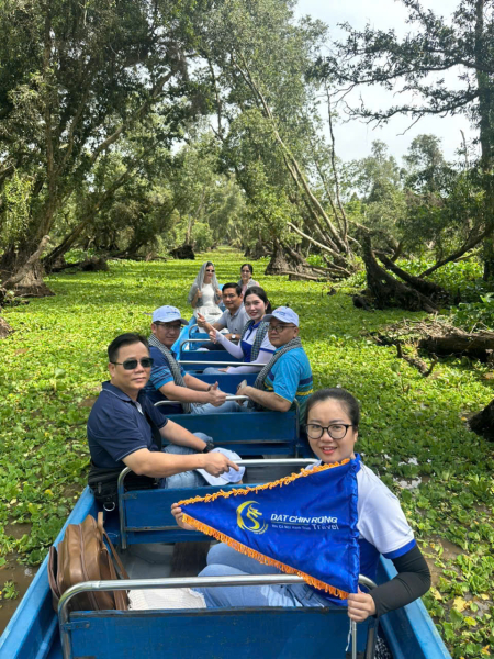 Trưa: Đoàn dùng cơm trưa trong rừng tràm với các đặc sản địa phương Tự do nghỉ ngơi trong rừng tràm.