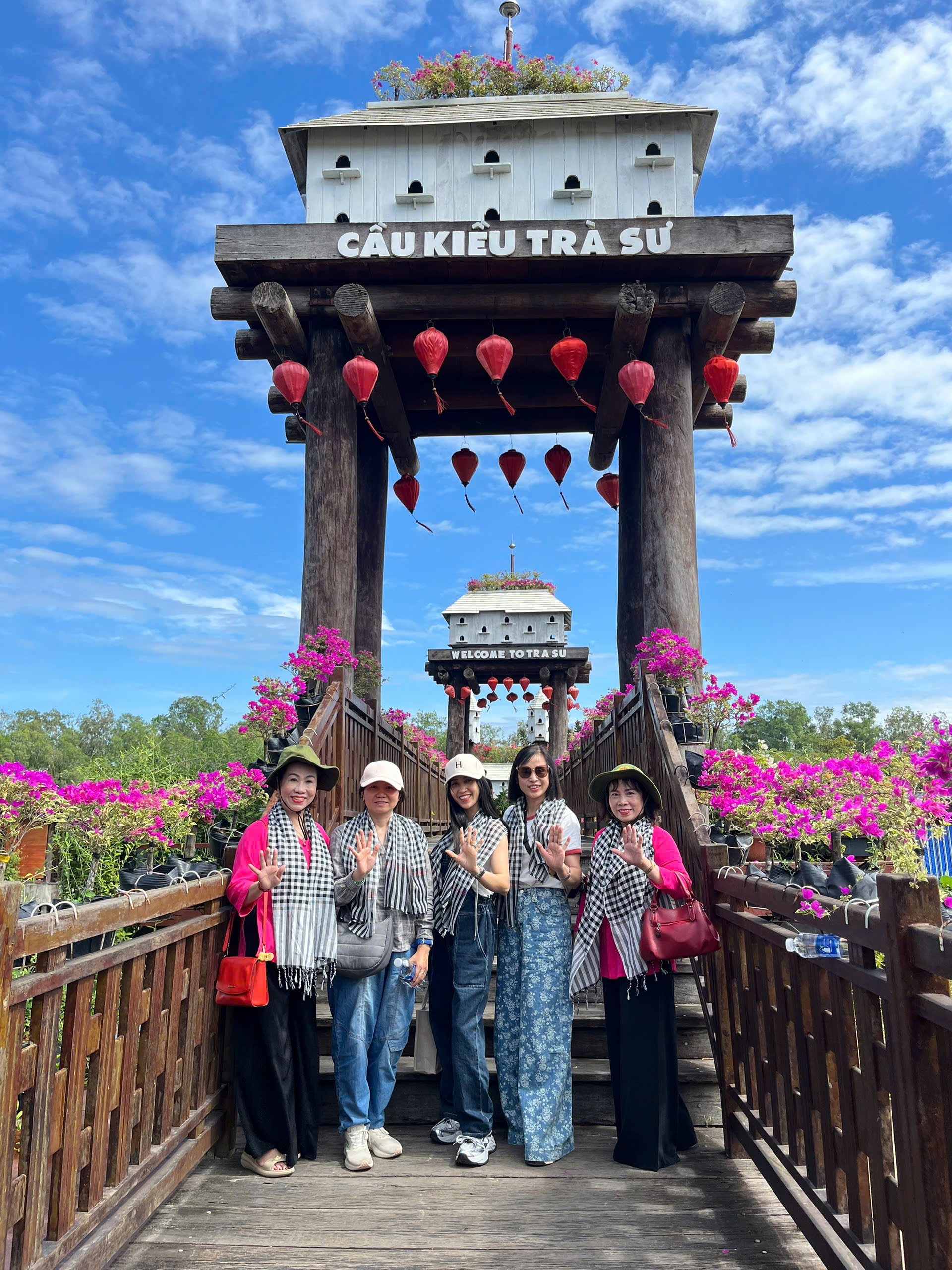 Đoàn được Checkin chụp hình với Cầu Kiều vô cùng đẹp mắt, tiếp tục xuống “Tắc Ráng – phương tiện đường thủy” di chuyển xuyên rừng Tràm Trà Sư – nơi tái hiện đặc sắc hệ thống rừng ngập nước ngọt của ĐBSCL ngày xưa. Đoàn sẽ được len lỏi giữa những đầm sen hương thơm ngạt ngào, những dãy bèo xanh thẫm. Quý khách có thể trải nghiệm ngồi “xuồng ba lá” tham quan khu vực cò, vạc làm tổ đẻ trứng rất thú vị (chi phí bơi xuồng tự túc). Đến tháp canh, đoàn có thể ngắm nhìn toàn cảnh của rừng tràm bạt ngàn, những đàn chim cò thẳng cánh bay lượn tự do.