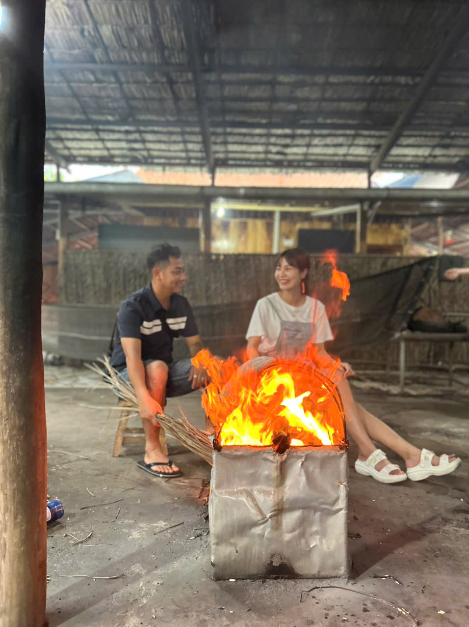 - Trở ra thuyền lớn, xuôi theo dòng sông Tiền, thuyền sẽ đưa quý khách đến tỉnh Bến Tre để tham quan lò kẹo dừa đặc sản của Bến Tre, lò bánh tráng ở xã Tân Thạch. Qúy khách được trải nghiệm thú vị khi đi xe ngựa đường quê, ngắm cuộc sống thường nhật của người dân địa phương.