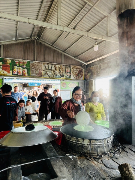 Thuyền tiếp tục vào tham quan cơ sở sản xuất hủ tiếu, tại đây Quý khách được xem quy trình làm hủ tiếu, cho ra lò rất nhiều loại hủ tiếu như: hủ tiếu củ dền, hủ tiếu lá dứa, hủ tiếu gấc… ngoài ra Quý khách còn được dùng thử các loại khô cá như: Vũ nữ chân dài, khô cá sặc, khô cá lưỡi trâu…v…v đặc sản của Miền Tây Nam Bộ. Quý khách có thể mua về làm quà cho người thân…