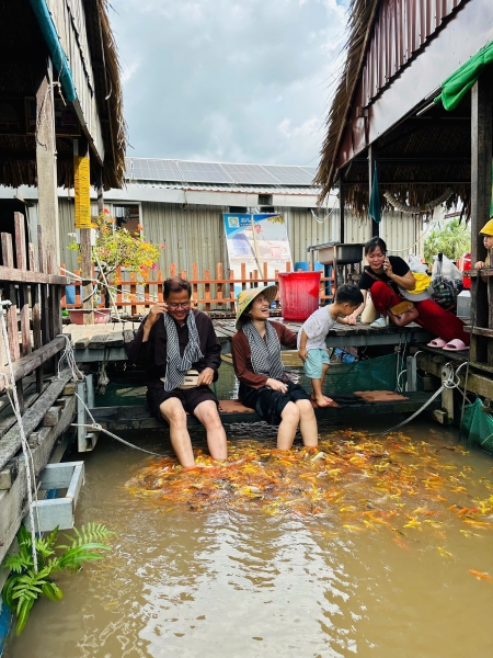 - Massage Cá Koi & Thưởng Thức Chả Cá Thác Lác: đoàn ngắm nhìn hàng nghìn con cá Koi với nhiều màu sắc khác nhau, trải nghiệm trò massage cá Koi vô cùng hấp dẫn. Khi massage xong, Quý khách thưởng thức chả cá Thác Lác Cườm.